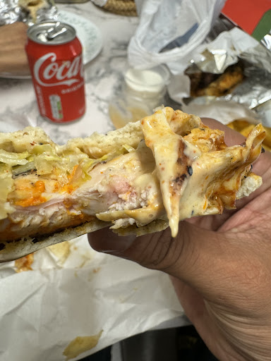 Wow the staff in there are special , unhygienic and talk about customers in their own language - thinking I didnât understand. I waited nearly an hour for collection for some peri peri food I wouldâve left without it but I had guest so I didnât want to make them wait any longer. When I got the food (it was a 5 min drive home) I opened the bag to find that the chips were stale, the pitta burger was cold some of the wraps had more sauce than chicken. While I was waiting for the food I seen him touching the salad with his hands not washing them either using the surface which dirty I had to ask him to use tongs and put on a foil before making my food . When I got my food order was wrong when phoned she and he hang up. Wouldnât recommend this place horrible terrible . Go to Gloucester grill or muchachos down the road much better and clean ! Oh forgot to mention the chicken was pink have a look...