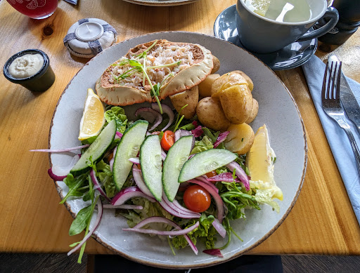 Read moreA fan of fresh local Seafood around the world I was excited that this restaurant was close to where we were staying. The photos on Google and on Instagram suggested a great connection with seasonality. You take a lovely walk down the seafront and can sit with views of local wind foilers. Now having seen exciting Lobster and Scallops on their gram in 2020 I was worried their menu seemed to have quite safe options I can get from my fishmonger 2 minutes from my house. When I asked the staff about this they seemed to have lost confidence in being able to sell items they feel they couldn't get a mark up on. These assumptions won't help to be honest as it's what's local and fresh that people want and I'm sure lots of data would support this. Nevertheless I ordered the fresh dressed crab which was lovely but as usual well priced. The dishes all look amazing just wish the variety was a bit braver. The dessert a créme brûlée flavoured ice-cream was ok, as was a raspberry chocolate sculpture but deserts are the icing on the cake. Hope to see Lobster back on the...