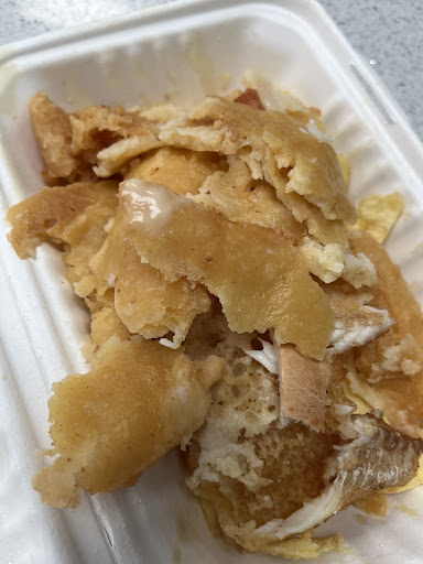 Just ordered and taken home 2 Reg cods, 6 chicken nuggets and a large portion of chips for £21.15 after standing in the high street and seeing the 2 chippys open. After looking at reviews I chose this shop based on the slightly higher reviews. I didn’t wait too long for the food and the service was ok. However I was handed 4 boxes without a bag. Little did I know all the food was swimming in grease in the boxes which saturated my daughter’s trousers on the way home. I’ve had to fairy liquid the two giant grease circles on each leg where the grease has run out the boxes on to her lap. Hoping that being quick and putting them in the wash will save them. The cod was lovely and cooked well but the batter was thick, the most greasy and soggy batter I’ve ever had (see the below photo of a complete box full of the batter off the 2 cod’s). Completely inedible- the chips were mediocre at best- very soggy, wafer thin and just not particularly enjoyable the chicken nuggets were reconstituted chicken bodies. Not breast chunks or like anything we’ve had from other shops. Completely disappointing and totally not worth the drive or money. Such a shame. Sadly I will not visit this place again and anyone wondering which shop to visit. Honestly I wouldn’t know as not tried Karen’s but will most definitely try them next time and hope the experience will be...
