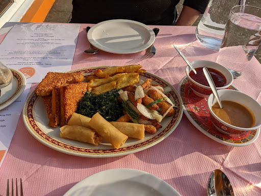 Now onto the good stuff. About 6 parking spaces on site, and on road parking. On entry we were well greeted and a nice table, decor is OK but could do with a tidy up. Air con so was nice and cool to sit in. Staff are great, always there when you need them and really attentive.