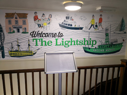 Read moreAnother hole in one from the group behind Trinity's! We got to find out about this restaurant from a visit to Trinity's @ Haslar (formerly Hardy's) although I've been aware of the lightship for years. My wife Jenni phoned for a reservation and we were accompanied by my Mother-in-law and Jenni's best friend. You need to gain entry to the marina to visit but it's well worth the extra step to eat on a lightship! Inside the stern cabin is spacious with bench seating and well lit. There is a bar through to the fore ends and also upper deck seating outside. The menu is predominantly seafood with choices for tapas and steaks from the grill too. I had the seafood chowder to start which can also be ordered as a a main. It was really flavourful and very filling, if you weren't greedy like me that would be enough food for most people! They weren't shy on the fish and mussels either with both in plentiful supply. For my main course I had the daily special which was half a dressed crab and frites. I am a huge fan of crab so it was an easy choice. We were lucky to get a time of year where the catch was so well portioned, Jenni had mussels in white wine and cream and they were enormous! I would say the menu is not exceptionally large but if you eat here it's the experience of sitting in the cabin and having a good chat, watching the harbour than just merely eating and leaving. The staff were really friendly and accommodating, it is essential you make a reservation if you are from out of town! Trinity's Lightship would be a nice to place to visit at anytime but I recommend the evening when the light gets low, that's the best time to be eating by...
