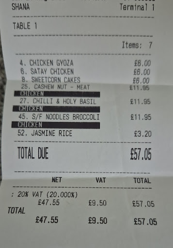 Read moreWith this restaurant I really don’t know where to start. My visit there in a busy Saturday night felt like I was a protagonist in Gordon Ramsay show, everything was going wrong. The food was average with the sticky rice that we ordered to be that sticky that it was impossible to be eaten. However, the food was not as much as a problem in comparison with the horrible service. The staff seem to be totally unorganised with zero training. So let’s give you some examples. They placed us on a table and 10 minutes later a waitress came to ask if we were ready to order but guess what we did not have any menu to look at. When we finally had the menu and order the food we had to wait quite a long time but they kindly offer us some prawn crackers on the house which was nice of them. When the food came, we have to ask for a napkin since we didn’t have any on the table: guess what? They gave us only one napkin so we had to ask again. We ask also for chopsticks and they brought us again only a pair of them at that point we did not ask for an extra one since we were tired of asking things and we were a bit tired with the communication. At the end we ask for the bill, nobody came to take the money from our table so we went to pay to the cash point however they did not know how to open it in order to give us our chains and a receipt and we had to wait for 10 minutes to open it. In overall I had the feeling that this restaurant had just open that’s why the staff was so unorganised, however I find it really unprofessional to open a restaurant without providing a basic training...