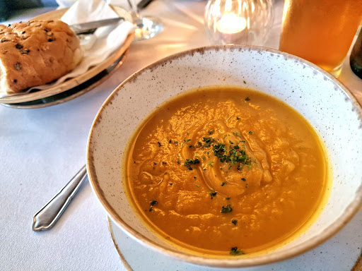 Read moreFirst visit to this restaurant. Soups and puddings were all delicious, as was the special salmon main. I had the vegetarian sage and onion tart for a main, and thought (or maybe hoped) that the tart would be a bit bigger than it was. The tart included some cheese, which created a little bit of sauce, but the overall dish, partnered with honey and mustard roast veg, was a bit dry. Perhaps because I know the restaurant is highly thought of, and is in the higher price bracket for the area, I was a bit disappointed.
