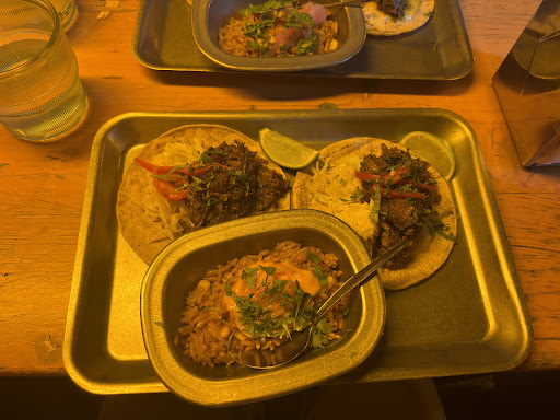 Each taco tray comes loaded with Mexican rice and a dipping sauce, to seal the deal. And while youâre at it, donât skip the âLas Papasââcrispy roast potatoes that are absolutely irresistible. If you are looking for something other than tacos the burritos looked fully loaded and we will definitely be tucking into one of these at our next visit.
