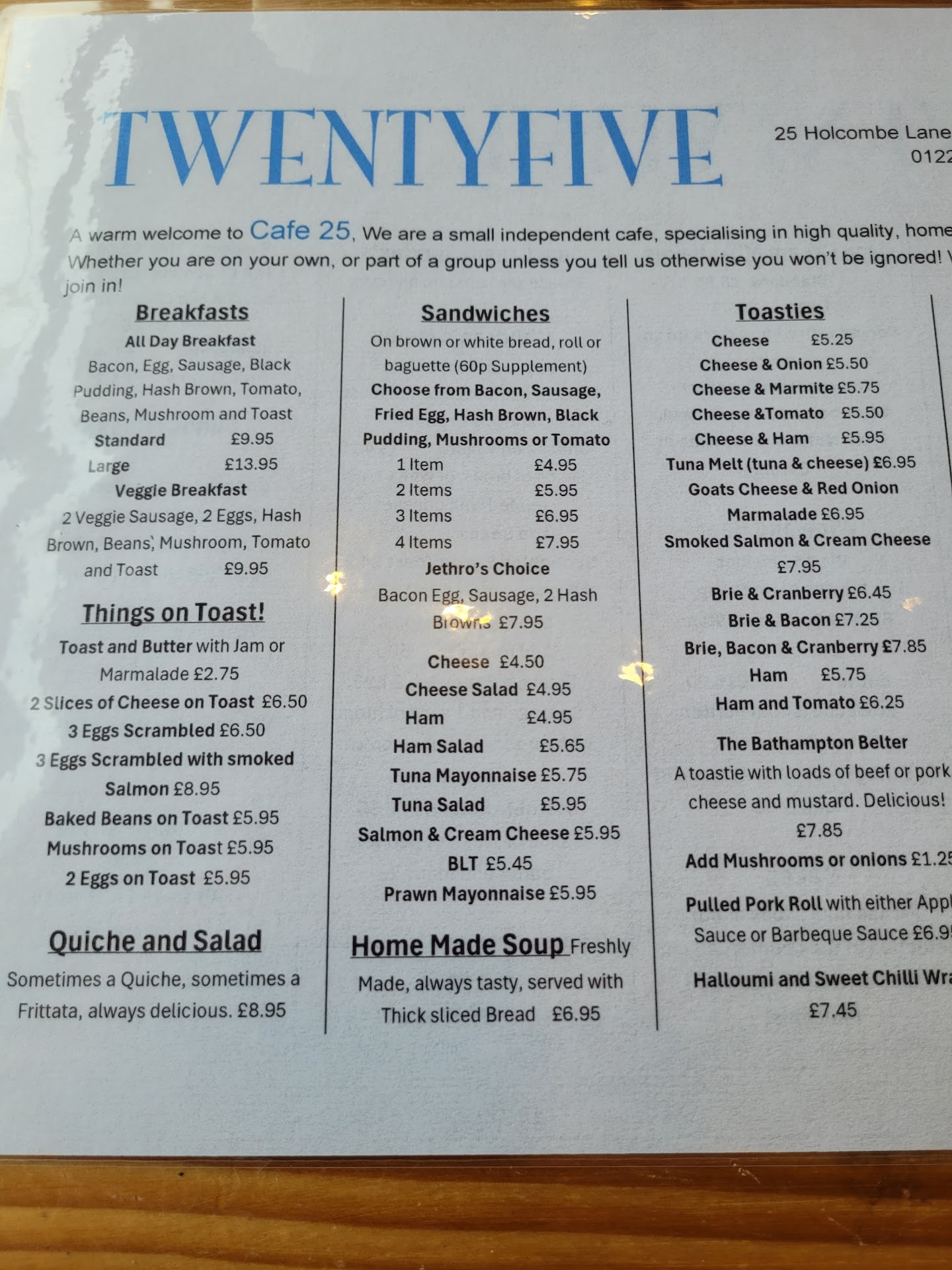 We've been around a bit lately trying roast dinners including The Stag, Ring O Bells in Hinton Blewitt, Hope & Anchor in Midford, Castle Farm etc... and this little gem in Batheaston has been the best overall experience out the lot. Me and my father thoroughly enjoy coming here to Cafe 25 and we highly recommend it.