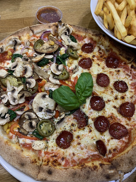 Read moreSaid on Uber eats it would arrive in max 30mins. It arrived an hour and half later. I can sort of understand this as it was Friday at peak dinner time, but the delivery times should be updated to give you a real delivery time. The pizzas arrived and they looked great. Although after we started eating them, we found that the pizza bases were quite chewy. Another thing which was underwhelming were the topping, the peppers and onions were still raw, it would have been nice if the topping had a little more effort put into them. Maybe we caught them at a time where they were too busy to get their best pizza's out but unfortunatly I dont think we will be...