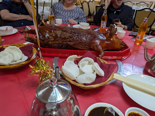 Read moreThis is a grand old Chinese Restaurant in the old style. It's a triumph of Oriental art deco. Check out those chandeliers! When we visited, on a Monday night, it was almost empty, but the food was tremendous! Two dishes, the fishy aubergine and szechuan numbing chicken were exceptional. We regularly order these in other restaurants, but the standard here was way higher. The chicken dish was cooked on the bone, but it really does make a difference flavour wise and it's worth the trouble of spitting out a few bits of bone to taste it. A word of caution on the chillies, though, they use dried bird eye chillies rather than the milder Chinese ones we are used to. Don't eat them! Ma po tofu was also very good, as was the other tofu dish (fried with shrimp paste) we tried. The squid with salted egg yolk was perhaps a little under-seasoned, but maybe this was relative to the more robust flavours in the other dishes. The portions were very generous - five dishes shared four ways was too much. You could eat well on three between four and still have something left. The staff were really helpful and friendly (they told us we had ordered too much!). Highly recommended if you know Cantonese food. Highly recommended...