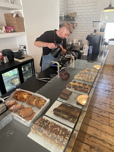 Ok great coffee friendly staff, good patisseries but not great seating and the seatings pretty limited, no oatly barista oatmilk either. Although this may have changed as i did mention it. The stool I sat on was not padded had no cushioning was cold, and very narrow plank surface to drink from, so I can't rest my arms or rest my back, like I can at say HISBE, I'm one of the few people who do reviews based on comfort as well as the quality of the drinks and food on offer, im getting a drink to take the weight off my bones while it rains outside i need comfortable seating. No hooks on table edges like at Traffe Cafe to hang bags , jackets or shopping this a great space saving idea that helps customers stop dropping there things as they have no choice but to leave them by there feet. This is good idea if you have such limited space where you can't have a coat rack or stand by the door. Little bit pricey compared to others that offer just as good coffee and patisseries just a stones throw away. But very good quality if you...