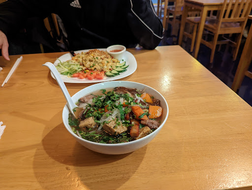 Love this cosy restaurant, the decorations are full of cultural touches, I have never been to Vietnam, but this restaurant is recommended by a vitamin friend,she told me the food here taste almost like eating at Vietnam. The chicken wings here is delicious, if you are KFC lover , you’d better try this dish , it won’t let you down , as an Asian personally I don’t like fried rice, friend ordered it and persuaded me to try it, oh my god it is so tasty 😋, and good size too! The second time I came here with other friends, waiting a little longer than the first time, but you can tell they are busy with deliveries, the waiter is very polite warm and chatty , the food just like first time, pleasant and taste just like it looks , I definitely recommend this local restaurant...
