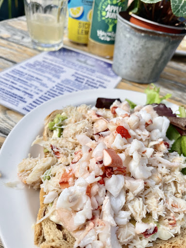 Read moreLovely little seafood stop after a long coastal walk. Fresh seafood caught locally and served in an uncomplicated way. Dog friendly :) Decent drinks selection and a food menu that will make it hard to choose. Lobster and crab open sandwich (£19) had a very generous amount of both on there and food value for money down to this. Lacked a little in seasoning personally but we added some of the sea salt and pepper available to our tastes. Some lovely local goods to purchase in the shop too and cakes if you aren’t full yet! (Didn’t try any) Excellent customer service, friendly and helpful. The thing I was most impressed about was on buying some mackerel pate and dressed crab to take home I was asked if I had far to travel and was I able to keep it cold/did I need a bag of ice? I’ve bought fresh seafood many times and not once have I been asked this question. Many obliviously buy fresh seafood and travel with it for hours or leave it in a warm car just not thinking about how it should be stored to keep it safe. (As a food professional this is always top of my agenda). I was really impressed. Small things make a huge difference....