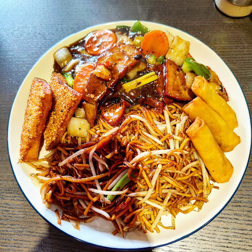 And my partner had char shiu pork chop suey, bean sprout noodles, prawn toast and spring rolls.