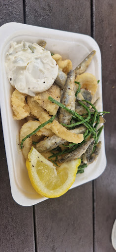 Read moreWas buzzing to come here as soon as I found it on Google Maps, firstly there's loads of massive picnic benches to sit on, most of which have parasols so it's perfect if it's sunny or even if it's raining. There's a lovely view over the sea as well. I couldn't believe how cheap the food was priced so I was massively spoiled for choice. The lady that runs the place was unbelievably lovely, she was an absolute pleasure to talk to and couldn't do more for us. I had the mixed option which is Fritto Misto and oh my god. I'd never had whitebait or cockles before and I am a convert. Lovely big portion filled me right up with a side of lovely sauce and fresh lemon, it was all cooked perfectly, hot and melt in your mouth fish in perfectly crisp batter that wasn't even a little bit greasy, it was the perfect texture. I didn't want the plate to end, the chef was absolutely lovely as well when we saw him! Cannot recommend this place enough, if the weather is terrible get a coat on and go and sit under the umbrella or under the huge gazebo that's there and treat yourself. Will definitely be...