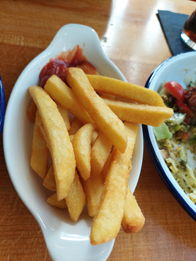Read moreDisappointingly average experience, we have given this place a miss for a few years after a couple of bad experiences, but decided to give it another chance on a Friday evening as the grandkids were down for the weekend. There was a steady trade, but not busy, with a few empty tables. We ordered drinks and food at the bar, the only real ale was Hobgoblin, with no Pedigree in a Marstons pub!! The food took a long time in arriving, we had to send the kids to the bar for more drinks. During this time, it became apparent that there was a lack of standards, no eye for detail, there was a napkin in the middle of the floor when we sat down, this was still there when we left an hour later. Waiters were standing at the end of the bar on their mobiles rather than paying attention. One waiter had his meal break with a bowl of onion rings and sauce, and sat ON the table next to us eating it, on his mobile. There appeared to be a manager behind the bar, but he also kept missing the errant napkin when he came past us to a large table up the top end . The food eventually arrived, it was OK, not good, and not hot. 2 x fish and chips which werent bad, one burger which was overcooked, and I had steak and chips....which came with a raw 1/2 tomato, a couple of mushrooms, and a few peas. It wasnt impressive. Nobody bothered to come and see if the food was ok or not, and the napkin got kicked another few feet along the filthy carpet. We decided that pudding wasnt going to be a good idea given the wait for dinner, and left, leaving the crumpled napkin on it's own. Nobody bothered to say good bye or thankyou. There seems to be a lack of customer service standards, and no leadership, the lovely blackboards promise the earth, unfortunately the team...