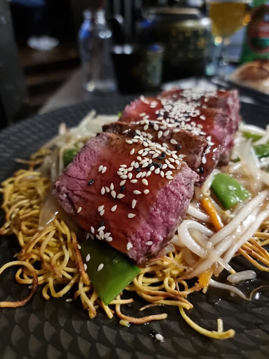 Read moreI wish I could award more stars - from beginning to end I had a wonderful meal. I was early but this wasn’t a problem. I was shown straight to my table and offered a choice of complimentary Jasmine or Black tea. I was asked about any dietary restrictions and I was brought a fresh menu marked up to show what I should avoid and the items they could tailor to my needs. I started with the chicken satay skewers - 4 tenders cooked to perfection and served with a generous helping of satay sauce. For my main I chose the Tataki Sorloin Steak (med rare). This arrived on a huge mound of tender stem broccoli. The steak was tender and succulent and the broccoli still had a bite to it - perfect! The steak also came with a portion of Jasmine rice. Whatever you order, do your self a favour and get a side order of the Kimchi and picked veg - both home made and so tasty. The pickles were fresh and crisp. The pickling brine wasn’t too strong - it allowed the individual flavours of the veg to come through. The kimchi was tasty with not too much heat. I prefer mine with a bit more ooomph but there was enough raw chilli garnish to take it up a notch. They both made me smile.