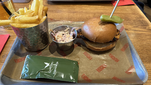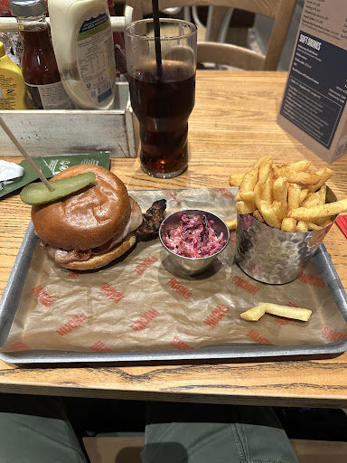 First visit to center parcs, great parc & welcoming staff until you reach Hucks & it let's the standards down!! Not great sign posting for the entrance and we came in one door just off the playground. Waited at the door unsure of whether to sit ourselves down or wait to be seated and we were ignored by servers so proceeded to find a table. Another 15 minutes later and no menus to be seen and server's just walking past us repeatedly (it was quiet by the way - three tables in). I approached a server and asked for some menus. He told me I can get them from the front, pointing in another direction. I had to leave my two children and ask another server towards the front as they still couldn't be seen. A girl handed them to me from behind a station and off I went. Back at the table another 10 minutes later she then comes back over to me and asks if I've booked a table? No - as I had just arrived from a big journey. She told me we can't sit at the table and we were moved to probably their worst tables in the corner. They had shoved a large family 10 - 12 people approx into the corner and stuck us on the end which felt like we were gate crashing a private party. Eventually over 30 minuites later a girl appeared to take a drinks order and she was nice and it sort of rectified a bad start although I didn't feel like I wanted to relax and stay for dessert so I paid before she even cleared the plates. The head of the table on the larger party was repeatedly having to up from her to table to make an order or chase a missing drink etc. Day three - I tried to make a booking for this place as the children wanted to play on the frames etc whilst dinner was cooking. The online booking system was causing an error and wouldn't allow me to add my guests and was advising to call a number which just kept disconnecting because there is no reception in large parts of the grounds. In the end we jumped on the bikes and rode to Hucks to try as a walk in. Apparently reduced capacity as they were trialling a new menu. I'm travelling with a disabled child and another child. The restaurant is large and three quarters if not more empty when I have been on both occasions yet they turn money away. Totally finished now with this restaurant and won't return to any of their chain. The only attraction is because you are stuck on site with not a massive restaurant option and they offer burgers etc which appeals to children. I went to guest services next door and they couldn't me more helpful and booked me immediately into a much better restaurant...
