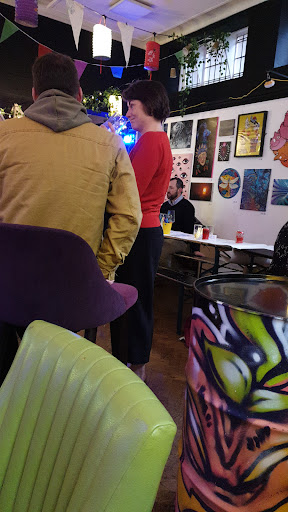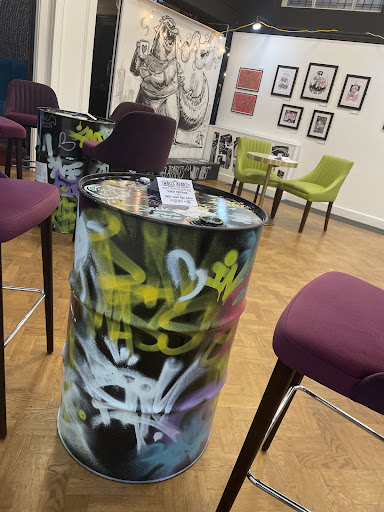 Read moreWas in colwyn bay and after costa closing down was struggling to find a decent coffee after 2 recent bad experiences but stumbled across the art gallery today and wow what an interesting place. Tables are laid out with paper as a table runner and a pot of pens I'm no artist myself but throughly enjoyed having a doodle. Very comfy seating. We only had drinks but there looked a good selection of cakes on offer. They also serve alcohol from a well stocked bar from what I could see. They also sell pens,paper,paint brushes and some novelty items. There was a snack bar aswel that had crisps and chocolate to buy. The coffees were fabulous and well made by the loveliest young man who was polite and very thorough in asking what type of milk we wanted etc. I had a latte my mum had a cappuccino and my brother an Americano. All batista made and we're hot and beautifully created. Also love the fact it was sugar lumps and not just pots of individually wrapped sachets. The cafe/gallery was clean and well stocked. Definitely need a place like this in llandudno so I can go daily. Absolute gem of a place with a cool vibe. Will definitely be my go to place when in colwyn bay can't fault it in...