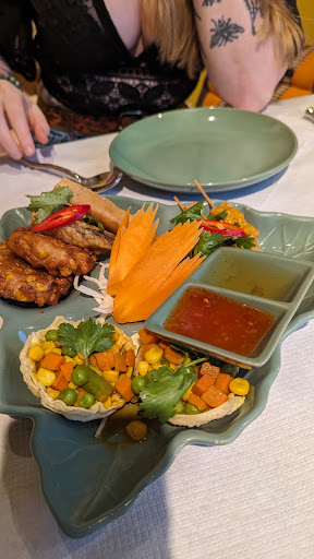 Green and red curries were nice, rice was nice. Spring rolls and sweetcorn fritters were OK. Pad Krapow was not worth it - all heat and no other taste and not made with mince meat sadly.
