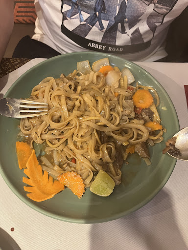 Read moreI honestly don’t know how this place has got some good reviews as I am Thai and this was not Thai food. First off, our server was rude. We told him what we wanted and apparently it was too quick for him as he said to us “How fast do you think I can write?” which left us feeling uncomfortable and like we were shouted at like school kids. Then the drinks came, one hardly had any whiskey in it (to which the server responded, that’s just the recipe), the starters were below average with the chicken satay tasting dry and bland. One of our mains was incorrect, so the waitress took it back to the kitchen and when she brought us the ‘right’ dish, it was the same dish, but just with more spices on it. It was meant to be drunken noodles, but instead we got a very odd Pad Thai (see photo.. nothing like what drunken noodles should look like! Can you even see the meat?). We ate our food as we were hungry and it was already late, but it was hands down the worst meal we’ve ever had. When we politely told our server how our experience was, he spoke to us in a condescending matter, fake smiling and writing down our issues saying that he will report it back to the kitchen, but we knew he was just speaking bull. He gave us 10% off our bill, but it was still £57 for a meal that tasted nothing like Thai food and an uncomfortable experience in the restaurant. We really should have got it for free. Just don’t go to a Thai restaurant if you don’t see Thai chefs or servers! It honestly wasn’t ran by Thai owners. Never never never again. Was also the day after we got married as well, so was disappointing. Oh, also to note, the couple next to us left their mains as well as they kept getting their order wrong and they couldn’t be bothered waiting for below average food to come out. We really should have done the same. I...