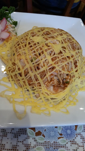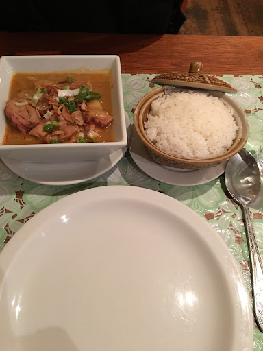 The seemingly bog standard menu and café interior, doesn't really tell you about the quality of food here. I found it a cut above other Thai places in the area. We had the seafood grill, which had suculent, tastfull king prawns, juicy squid and perfect green muscles. The Pad Thai had an unusual egg basket over the top. Some might find the Pad Thai too sweet, but I really liked it. The spicy duck could be adjusted to your specific spice tolerance, and I wish I had asked for mine a bit hotter, but the duck was tender and they did an excellent job of making a tamarind based sauce blend in with cherry tomatoes and green beans. The sticky rice was a good portion size and perfectly cooked. Lots of menu options have a tofu alternative, and a sign clearly states that dietary requirements can be catered for - aces! Our Thai rosé wine was ace too. Best of all our waiter was patient with our small. For me, this Thai eatery beats Street...
