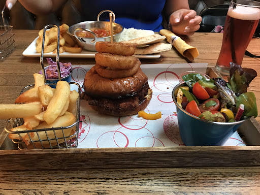 Read moreBooked a table here yesterday, no one came to us to seat us they just looked at us and said nothing, had to go over to the bar to be seated, ordered our starters at the bar, an hour later our starters came out, we had ordered our mains while waiting as we thought if it took that long to do starters we’d be waiting ages for mains, onion rings were disgusting, thick with grease, over cooked on the outside but raw on the inside. No one asked once how our food was, on to the main, they came to give us our mains, waitress said ‘what you’ve ordered more food’ made us a bit uncomfortable considering we’d only had starters at that point. Homemade chicken tikka did not taste like chicken tikka at all! Rice was all stuck together and it was vile, I tried some and left the rest. Gammon had no taste and chips were really greasy, best part of the meal was the salad but how can you go wrong there. At a certain time the place starts to feel more like a ‘club’ not a drink and dine, no drinks menu, they seem to care more about those drinking there than the food orders, can’t be the only ones with the same thoughts as I seen a couple plates go back full and people walk out. Do...