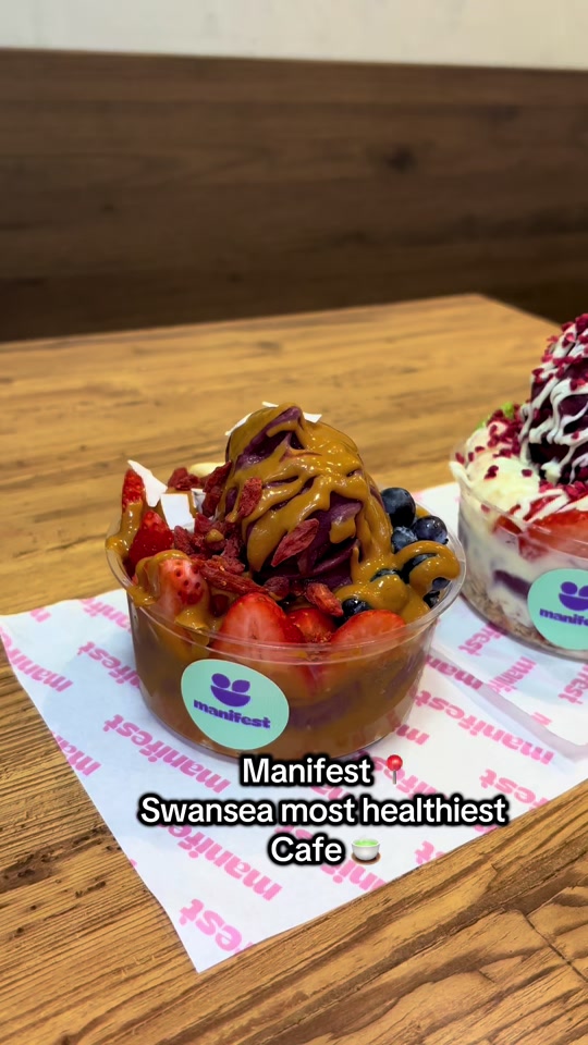 Come with me to Swansea’s newest açai & salad launch – @manifestcafeuk 🍓🥗