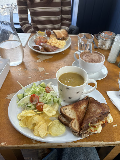 Read moreI absolutely love this place! The portions are generous, especially considering the price. I am gluten intolerant and there are gluten free substitutes for pancakes and toasties (bread) and for gluten free products they are very good. I had a halloumi chorizo toastie which came with homemade soup, salad and chips-not fries but potato chips/crisps. I also had a mocha which was very good. The soup was very cosy and comforting and my sister had pancakes, beans, bacon, sausage and eggs which were all very good. I really recommend coming here the staff is very friendly. It was crowded because it’s a popular place so we had to wait but not long only 5-10 minutes. They also have delicious cakes, I’ve heard positive things about the carrot cake and the...
