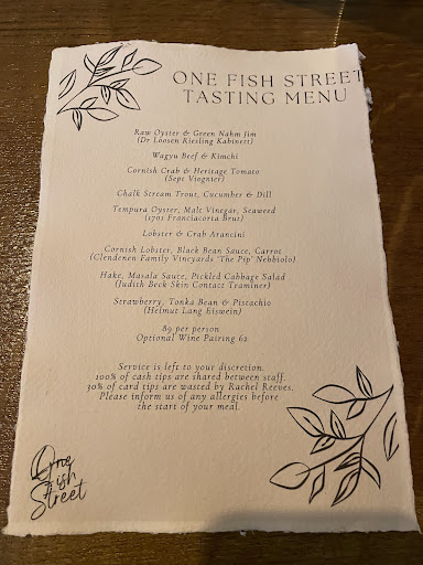 The food has always been superb. The fish is so fresh and always immaculately cooked, an array of seafood being served across the menu, from crab to lobster to mussels to hake, you name it! There’s a lot of inspiration from Asia, mostly Japan, which is a unique twist on Cornish seafood. Portions aren’t the biggest even for a tasting menu, with some bread or maybe a few more carbs being needed to help bulk a few of the portions out, but by no means did we leave hungry - for the quality and thought of each plate, and the chance to try such amazing and creative food, we were more than satisfied!The team is friendly and greets you with a smile, looking after you throughout the night. It’s a great experience from start to finish, and being able to speak to the chef is just fab! The value is still there and despite rising costs this place always seems to have a cheap (ish) menu relative to other spots of this calibre.