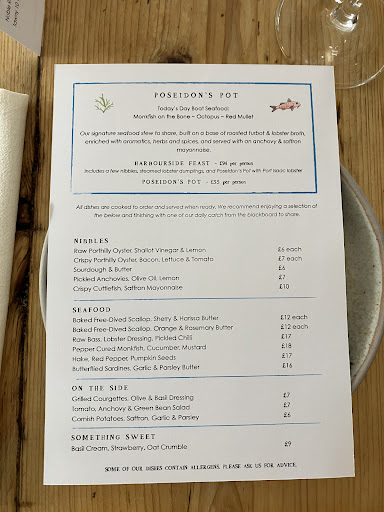 Read moreDinner. Within a Grade II listed 15th century fisherman’s cottage overlooking the harbour and the sea. There's not many decent restaurants open on a Monday night,unusually this is. Bookings are either 6.00pm or 8.30pm. The earlier time slot was full and we managed to get in for the later time. It is basically two sittings, as it's a very small restaurant with only 8 tables. Whatever you do,don't arrive early as they will not let you in until your time. Of course we were early and had a drink in the pub opposite anxiously waiting for the door to open.