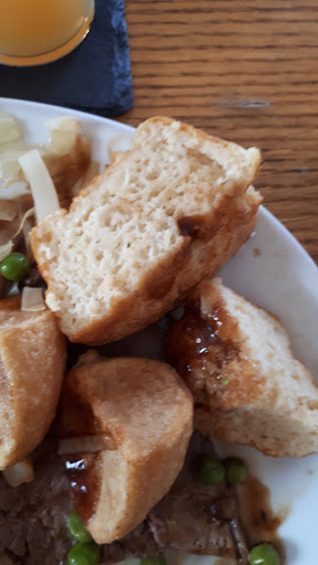 Read moreBooked for Sunday lunch for 5 adults. 1 had lamb, 1 had pork lunch the meat was ok not great and didn't look as though it had been cooked on site . The 3 others had beef. This was tough and very stringy, very low quality and the Yorkshire puddings, they where something else literary something else just see the photo of one cut in half🤮. Not sure if it was a muffin 🤣 but defiantly not a Yorkshire puddings.... when staff where asked if meat was cooked in house he said no. I asked if this was a Yorkshire pudding, he just looked at it and said he would pass it on. The veg was from all cooked from frozen peas and carrot mix, along with the roast potatoes, the mash was very lumpy ....... Would I eat here again not a chance in hell. No apology or...