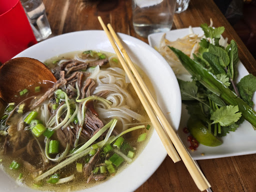 Read moreA group of 3 of us visited on a very busy evening, as walk-in's I was not expecting to be seated at all however a table was miraculously and very quickly located for us. All the staff were extremely friendly and working very hard. We ordered 2 pho, a vietnamese salad and spring rolls along with an iced vietnamese coffee and a couple of beers. Although service was exceptional, the food was very disappointing and the dining space really cramped. The pho were presented beautifully but both lacked any depth of flavour. The salad was completely devoid of any flavour, was dry and sad. The three of us set about trying to make the food more palatable by adding very generous helpings of the table condiments, along with a big bowl of Thai chilliesour waitress kindly brought for us after seeing our disappointment. The vietnamese iced coffee was also sub par, which out of everything we ordered is the item I cannot fathom how it could've been so poor. The spring rolls were absolutely delicious and the beer was good. We paid in full only because the service was so good (our waitress was very upset by the fact the food was so poor and was continually apologising) but we will not be returning as unfortunately what we were served that evening was so far removed from authentic Vietnamese food, we may as well have gone...