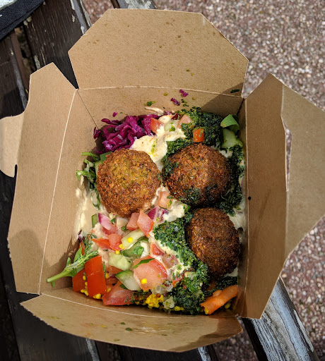Read moreMy friend recommended this place for the falafel and salad and it didn't disappoint. This is perfect street food and the falafels are amazing. Set up brilliantly currently during lockdown too with no need to go inside. The smell as I approached was mouth watering. My daughter said she wasn't hungry until she smelt the food and then ordered the daily special. The flavours and mix of fresh ingredients is superb. Really friendly service too and the use of compostable / recyclable take away containers is great. My new favourite find for daytime take away food with a difference. Within walking distance of home...