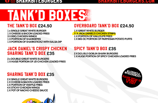 Read moreReally enjoyed my evening here. Food was great and portion sizes were huge! This could be the first place I’ve been where portions are actually abit too big. Every side can easily serve atleast 2 people, the prices misled me slightly because everything was so cheap so I thought the portions would be small. This is definitely a good thing and not a bad thing though. Everything also came out hot and was cooked well! Service from the staff was flawless, they accommodated for us at every turn however they were limited in how much they could do. For instance our table was booked for 6:10pm however we didn’t get seated and had to wait outside in the cold until gone 6:30pm. This was because a large group booking had run over by quite a lot. Meaning quite a few people were waiting. Totally out of the staffs control but far from ideal for the customers. There was also no table service and you have to order at the bar, this takes away from the restaurant feel and makes it seem more like a fast food place, the queue can be long sometimes too. I wanted to order a milkshake before leaving and when I finally go to the till they had run out which was again nobody’s fault but annoying to queue for nothing. The atmosphere was pretty good, the place was nicely decorated and all the customers seemed happy enough. There was some rather loud music and constant people coming in to collect food orders, neither were an issue to me but I know those things could disturb some people. I will definitely be going back as the food was amazing and I never got to try one of the milkshakes! Thank you Sharkbite Burgers for a...