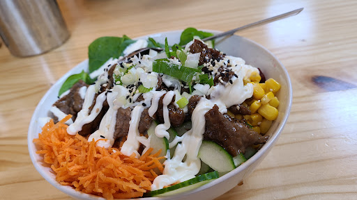 Because we were in hurry, we decided to order Bulgogi Bibimbap which could came fast....and eat fast !! Bulgogi Beef Bibimbap is a good choice if you want something not spicy, but simple and delicious. Beef is tender and delicious. Salad is fresh. Everything in the bowl is perfectly match and balanced. If you can't eat beef, you may consider Bulgogi Chicken Rice Bowl. My husband loves it so much that he finished it very quickly - chicken is tender and juicy and he thought he was eating chicken thigh instead of chicken breast !!! I also ordered a cup of Taiwanese bubble tea with brown sugar. The tea itself is great. The bubble is not sweet, and a little bit tough. What "surprised" me is the straw......it broke so easily that I decided I will request "no straw" in my furture...