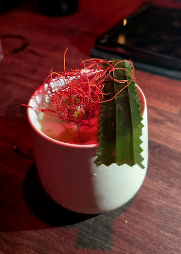 The drinks were completely out there, you choose which spirit you want (out of the three provided) which was a nice twist. We tried a thick Thai green concoction, my partner wanted to try one which she'd seen online but was no longer on the menu though they still made it, fortune cookie old fashioned, though my highlights were the margarita style drink with crack salt which I'll contend is probably the best variation of that cocktail I've had. Also the coffee with choux foam to finish on.