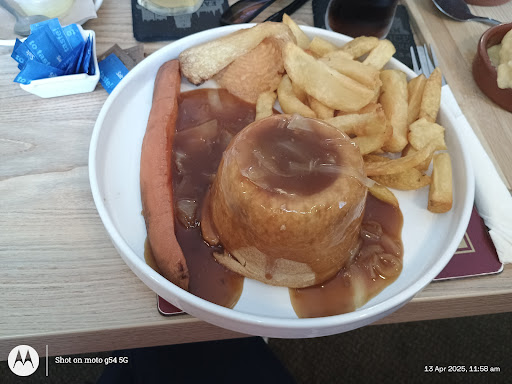 Read moreWent in here for a Sunday roast yesterday I've I've wanted to try it for a while.. Well where to start. Feom the moment we walked in a felt uncomfortable, we were placed on a table right near the front door, I struggle with an eating disorder so I dont like people that close to me when I'm eating.. (I understand people will be walking to get past you) but it was too close and too much for me. The light above us was flashing and my partner is epileptic so we asked if we could move as neither of us were comfortable sitting there we got a very rude abrupt flat out no. The tables were so close together you felt like other guests were sitting on top of you. When the food actually came out I can honestly say it's one of the worst meals I've ever had. You got plenty of meat but that would be great if it actually was edible. The mash had instant mash mixed into it and the veg came in a little split bowl with carrots on one side and cabbage in the other.. I was expecting a bowl each only to find that was to share between two of us the Yorkshire pudding was burned and very hard, tasted as if it had been cooked a week before frozen then heated in a microwave. And came out very fast withing five mins of ordering. The staff behind us where you wait to be seated were staring at us the whole time we were eating. If you value good food avoid this place like the plague. I got the impression that if your not a local In there then your...