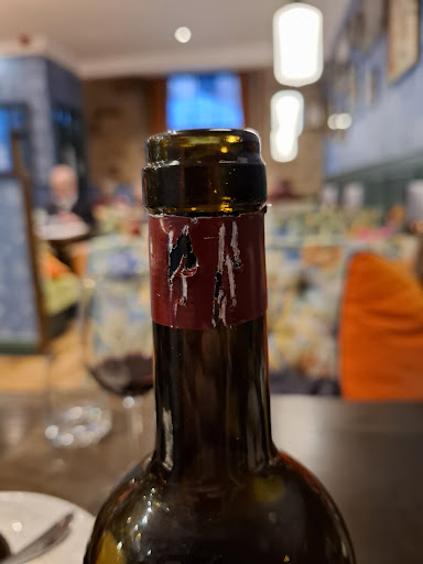 The barman brought over our bottle of red. Comically, he didn't know how to use the corkscrew, he made hard word of it but got the cork out in the end without any bits of cork in the wine. The wine was excellent!