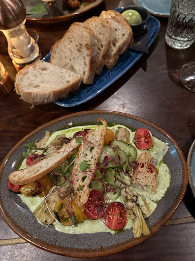 In short: -+ food was decent, but it's a bit too expensive. on top of the listed menu prices is a 10% hidden fee non UK issued cards don't seem to work. wait staff can be forgetful waiting time at the bar drinks is kind of long. atmosphere is cool