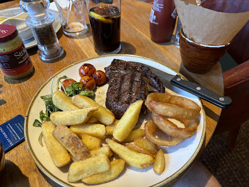 To start my sister and brother-in-law had the Baked Camembert for 2, I had the Calamari and my husband had the Brie Bites⌠all tasty, the cheeses as gooey as possible and the calamari crisp. For mains my sister had Chicken Schnitzel, the meat was succulent with no dryness, I had the 10oz Ribeye - with Dripping Sauce - cooked Rare - it was cooked to perfection and the dripping sauce was silky and intense in flavour. My husband had Mac & Cheese - with Pulled Brisket which was piping hot, very cheesy and the pork was tender. My brother-in-law had the Pork Belly & Mash - probably the most tender and moist pork belly experienced and a large portion too. My little nephew had the Childâs Tomato Pasta, a really large portion for a child and had a really intense tomato taste. No complaints at all for the mains, everything cooked well, very flavourful and decent portions. For desserts we had 2 Sticky Toffee Puddings, a Blackcurrant Sorbet for my nephew, a Banoffee Pie and The Honey Pot - all very tasty, the blackcurrant sorbet was nice and tart too. The only issue was The Honey Pot being a bit heavy and dense, but tasty nonetheless.