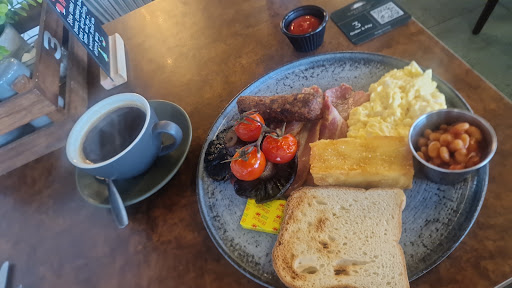My first visit today. The lack of food for a place labelled as "bar and kitchen" was disappointing, maybe they opened too soon before the kitchen was ready? There was only a selection of 3 cakes on offer. I chose the jam and cream scones and sadly the scones were dry, bordering on stale. The Welsh brand of clotted cream was lovely though. I'm not vegan but always have oat milk in a latte for a creamier yet healthier option (despite having clotted cream on a scone haha) and their selection of milks was really good. An oatmilk latte with an extra shot of coffee is ÂŁ4 here and the cup size is more than adequate (they don't do the oversized cups that the big chains do, which is fine by me) and water is available to help yourself. The lady serving me was friendly and helpful and chatty. I couldn't fault her service. I was disappointed that there was no public WiFi and I didn't see any power charging points, so anyone wishing to use a laptop here would struggle... They will have to stick to the other chains of coffee shops in the city. The venue is clean, the table clearing service from the staff was prompt, the dĂ©cor is smart and modern, it's a light and airy cafĂ© and after the kitchen is fully up and running, I'll likely return, but more clear menĂșs and pricing will be required. Overall, a pleasant experience but some improvements...