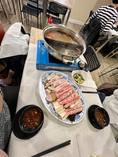 Me and my friend craved dumplings and searched for something nearby since we had to take the train only few hours later. We have a rule: if the menu is not in English, it must be worth it. We were ready to order when we noticed the table behind us getting a hot pot. I never had one, my friend is some sort of connoisseur because he lived in China for some time. Let me tell you, it was absolutely delicious! The two broths were rich and perfect for cooking all the meat and fishes we ordered. It’s an all-you-can eat thing, so don’t exaggerate. Order what you fancy and top up when you want something more. The place is not fancy, but it has a very warm and homey feeling. It made me feel welcome. The service was as warm as the dish we ordered. There’s a level of attention I did not expect: we got offered a small plate of prawn crackers while we waited, we ordered tap water and even got a refill (free of charge). The owner even placed some napkins over my coat resting on the chair beside me in case any splatters fell on it (which definitely did because I’m clumsy). At the end of the day, we paid what we were told and there were no hidden extra charges. It was really a fun, relaxing and delicious meal.