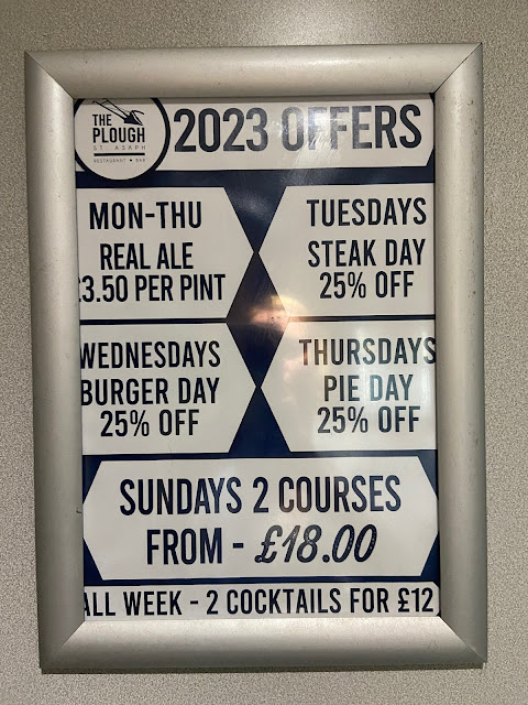 EDIT to The Plough response. I now attach sign for all to see, which clearly advertises Cocktails 2 for £12 AND the real ales at £3.50. Neither offers were applied until we chased them up. So, utter rubbish about the offers aren't applied until the bill is made. The bill was made and it didn't have the offers applied. How many other tables have you ripped people off?! PLEASE NOTE: There is no reference to 2 cocktails for £15 or they have to be the same cocktails. Your 'New for 2023' Poster is clear for all to see. No T&Cs or small print shown. Also, we've been visiting the Plough for at least 10 years. This was the second visit this year. Your manager WAS rude. Not only did I think this my wife and kids picked up on this and mentioned it when we...