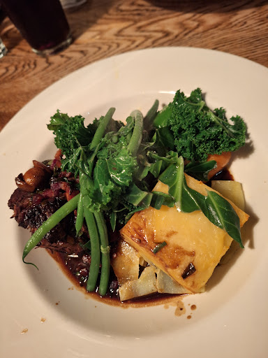 Read moreThe lighting outside was magical and the car park spacious. We were promptly taken to our table and were given menus. When I checked, allergens were not detailed. The side plates were dirty with a greasy film. We waited ages for waiting staff to come back to the table. I asked for a gluten free menu. The gluten free menu wasn't up to date so the staff member had to check with the kitchen if I could have the blade of beef, which I could. The waiting staff asked what drinks we wanted but didn't offer any helpful suggestions, which really wasn't helpful. I had a mulled wine, which was smooth and tasty. The food arrived promptly, but my green vegetables on top of the dish were cold. Also the jus was a little salty. Nobody came to the table to check if the food was okay or if we wanted additional drinks. After dinner, we asked for the dessert menu. There was no attention to detail as the gluten free menu wasn't brought. The staff member took our dessert order and started to rush off. I had to call him back for another mulled wine. I got the impression he was in a rush all evening and waiting on our table was far too much trouble. We were sitting near the kitchen. From the kitchen noise levels and shouting, it sounded like they were having their own party in the kitchen. When the bill arrived, the service charge had been automatically added. I question what we were paying service charge for. Had I been paying the bill, I wouldn't have paid the service charge. This establishment needs to focus its attention on the detail. I suggest you employ mystery shoppers over the coming months so you can verify what experience your customers are really having. I think you've had some good reviews and have since taken your eye off the ball. I wouldn't subject myself and my family to...