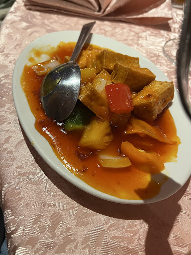 The food was a bit variable. Lovely honey spare ribs, but artificial tasting satay chicken. The crispy aromatic duck was nice, but the mains were patchy. Lovely crispy chilli beef, prawns and sizzling beef, but the Kung Po chicken just wasn't like any I had had before. The broccoli and garlic was lovely.