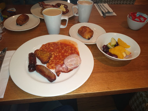 Ā Ā Ā Read moreBooked online for 7PM as we couldn't book via telephone. Arrived promptly but still had to wait to be seated, even though the restaurant was only half full. Was told who our waitron was and she was very nice but very new and took an age to actually take our order even for drinks. Tables were piling up all around with dirty plates and no one was using their initiative to actually clean them, just walking past, to and fro with not an awful lot of actual work seen to be done. Counted 5 front of house staff so things could and should have moved fairly quickly especially seeing as the place wasn't particularly busy. Our order was finally taken, 2 Latte's and 2 mixed grills so not the most difficult of orders and there we sat. And sat. And sat some more. After half an hour the staff behind the bar came over and said "If you're the two waiting for the Latte's you'll have to get them yourself from over at the breakfast bar. I can do them but I'm not allowed to carry hot drinks around the restaurant. This surprised us but we acquiesced as it had been 30 minutes since we were seated and we were both thirsty. On my way back from the coffee station I passed the young lady who had instructed us to get our own drinks carrying two Irish Coffees to another table! Things didn't get much better apart from the fact our waitress came and apologised for not telling us about the self service drinks but that she hadn't been told either! Not her fault then. Food finally arrived at our table at 8PM only for me to be told that mine had been dropped and would need to be recooked. I watched my wife eat hers, she then watched me eat mine. Hardly ideal. Finally went to pay and the shambolic nature of the place continued further as there was a queue of people at the bar trying to pay, order drinks, complain to the very rude young lady from behind the bar who's whole attitude was one of just not giving a damn and looked like she was only there under sufferance and the sooner we all Foxtrot Oscared the better. People were actually telling her that they weren't waiting any longer for a drink and the service was shocking before they left but I never heard her even apologise once. Finally left after an hour and forty-five minutes and consider myself to have gotten away lightly as the gentleman in the queue I was talking to had been waiting two and a half hours. Really, really...