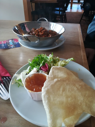 So the food was average tops. However the entire experience was marred by the lady behind the bar with curly hair who failed to crack a smile throughout our visit. The last time I visited she was the same. Sharp to the point of rudeness, no smile, nothing. I asked for a desert spoon. She said she had a tea spoon I asked for a larger spoon.... Do you meet it right now ? I'm like yes I do. I was with 3 guys with learning difficulties and one needs a spoon to eat. My colleague tried to explain later why we needed a spoon and she walked away, there was no acknowledgement or anything. I literally have no idea why people like this work in hospitality. I then heard her be rude to the next customer over a glass of wine. Id have thrown it at her. If this is her pub then I would avoid going, if this is her job then her manager needs to transfer her to the local prison where her conduct and manners and general demeanor would be better suited. Everything was too much trouble and ..... When we left she stood at the bar Infront of us , no other customer and she failed to thank us ..... Buggered if was thanking her . If you wish to see the most miserable woman in the UK go to...