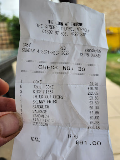 Read moreLion at Throne was a huge disappointment. On entering the grounds of the pub, it was very unkempt. Clearly, investment needs to be made. The bar was OK staff were friendly but in need of training clearly. The restaurant decor was warm and pleasent again the serving staff need to be given some front of house training. The menu was one of the worst I have come across in my travels around the UK. Handed to us on a few sheets of paper with a miss mash of food choices. Specials were on a board outside the restaurant, so you had to go out and read them. Too much food was served both for starters and main course. Thus, we declined to order a dessert. This is a venue that clearly has the opportunity to do a good trade throughout the year if it invested in the basics and did them well. Finally, I visited the loo before leaving the restaurant and was almost sick from the strong smell of sweage coming from the bathrooms. Surely, the owners must have been aware of this. In all honesty from our experience, we could not recommend this pub restaurant and hope that when reading this review, you will take on our...