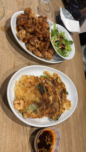 Plus side, staff were nice and attentive, the teas were delicious, the decor was nice and music was good (mainly girl group kpop artists) but the food itself was really disappointing and very expensive compared to other places we've been to :( we had a tea each, a rice bowl, a chicken dish each plus mandu and the kimchi pancake to share and it was £31 each.