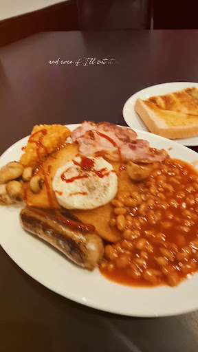 Was shocked at the prices to start with, thought, its got some good reviews will give it a ago while in the area. I'm a bit fussy and don't like beans or tomato, so asked for hash browns instead as they don't come with the breakfast (another thing I was shocked about considering the price they didn't come as standard on the hunger breakfast). Was charged for the one hash brown they gave. Personally I thought very expensive for what it is and quite greasy. However gave 2 starts as the sausages were lovely. People walking in top less, thought they'd at least be asked to put a shirt on. Would I come here again? No. We don't live in the area so maybe local prices are all like this. But in Tidworth, you'd pay £8-£9 and can get an all you can eat breakfast with...