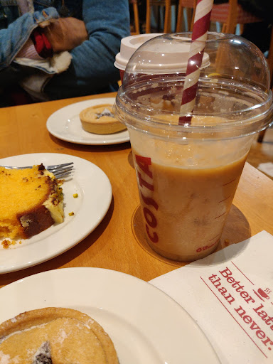 Read moreTerrible service, and really dirty. I ordered the Frostino (first time) as they had the poster up of the new Irish Velvet Range - on the poster the Frostino has chocolate sauce and whipped cream. What I got looked nothing like the picture. When I asked about it, he threw his hands up saying "I don't know, I didn't make it, I think we're out of whipped cream." Then he mockingly offered star shaped sprinkles. When I asked about the chocolate sauce, he said "I suppose I could put some around the rim if you like." At that point, I just wanted to leave, but I had time to kill waiting for my train. He offered a free drink and brought some tarts to my table - too little too late. I tried some of the Frostino, but it tasted like it was literally just ice and syrup. The service at this particular Costa has always been inconsistent, but this experience has been the most disappointing. Never going to any Costa Coffee...