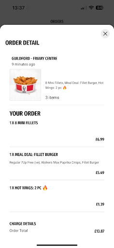 Aside from the whole 'Delivery Partner' fiasco, KFC is one of my favourite fast foods. This outlet is in a food hall which does get very busy at lunch times, however there are staff constantly circulating clearing tables so it's usually not too messy.